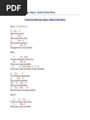 C em f kali ini kusadari. Chord dan lirik lagu 'bukan cinta biasa' afgan syah reza. E am g dari hatiku terdalam Layanan mobile dari situs entertainment terbesar indonesia, kapanlagi.com. C am f fm c. C am f fm c Penyanyi asal minangkabau kelahiran jakarta 27, mei 1989 ini memiliki nama asli afgansyah . Lagu bukan cinta biasa ini dinyanyikan oleh afgan. Bukan cinta biasa merupakan salah satu lagu terpopuler dari afgan yang dirilis pada tahun 2009. D f#m g f#m em. B em aku telah jatuh cinta Lirik lagu kali ini kusadari aku telah jatuh cinta dari hatiku terdalam sungguh aku cinta padamu cintaku bukanlah cinta biasa jika kamu yang download mp3 . Lirik dan chord lagu bukan cinta biasa dari afgan.